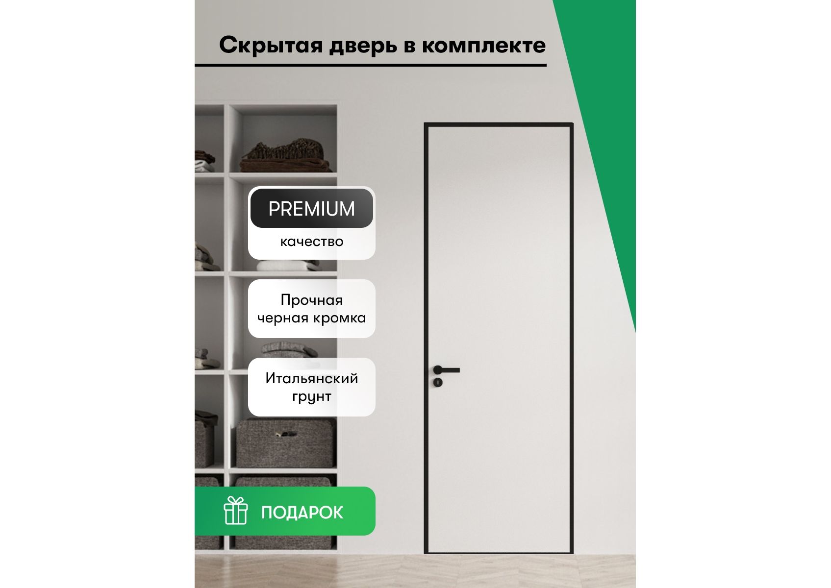 В каждом доме нужно что-то особенное, что будет отличать его от других. Как ключевой элемент интерьера можно использовать креативные двери Invisible черная кромка. Потайная скрытая конструкция дает возможность воплотить в жизнь самые смелые идеи дизайна. Изысканная композиция, наполненная минимализмом и лофтом, делает данный комплект неповторимым акцентом в вашем интерьере. Отличительной чертой этой системы является скрытая коробка без наличников, создающая эффект невидимой двери. Уплотнитель обеспечивает плотное прилегание к проему, а скрытые петли добавляют шарма и стиля. Рама из немецкого МДФ и LVL бруса гарантирует общую надежность дверного полотна. Прочная кромка из алюминия предотвращает износ материала, сохраняя первоначальный вид. Монтаж полотна вровень с плоскостью стены создает единую гармоничную поверхность. Одним из достоинств данного отделочного материала является возможность самостоятельного выбора отделки под покраску, так как полотно отделано прозрачным грунтом. Таким образом, цвет и фактура стены будут великолепно сочетаться с дверным полотном, придавая вашему интерьеру завершенный вид. Тщательно продуманный проект строительства требует использования только качественных материалов, поэтому, предлагаемый вам дверной комплект выполнен из деревянных элементов, которые обладают высокой износостойкостью и структурной прочностью. Алюминиевый короб надежно защищает конструкцию от различных внешних воздействий, увеличивая срок службы до более чем 20 лет. Эти уникальные межкомнатные решения объединяют в себе функциональность, надежность и эстетичный вид. Ваш индивидуальный выбор отделки поможет создать интерьер именно вашей мечты.