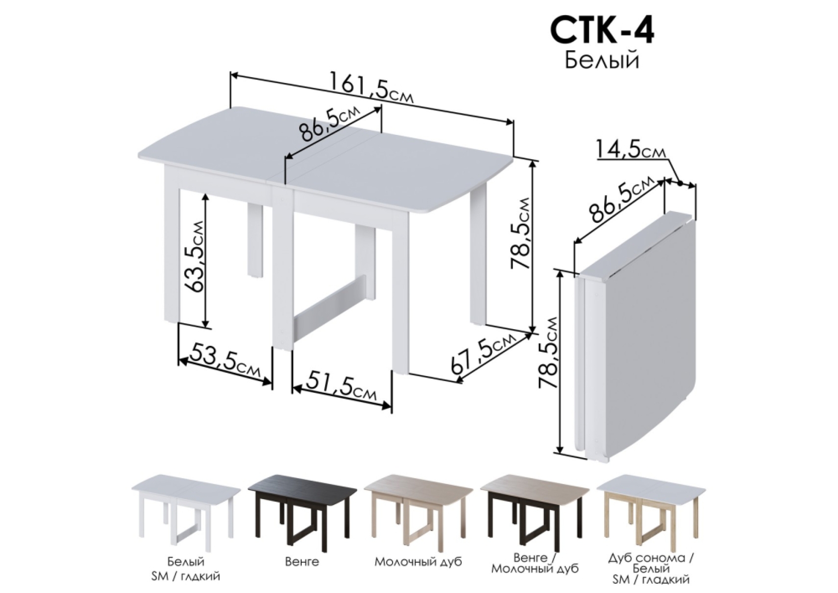 Стол-книжка СтК4 161,5х86,5х78,5 белый