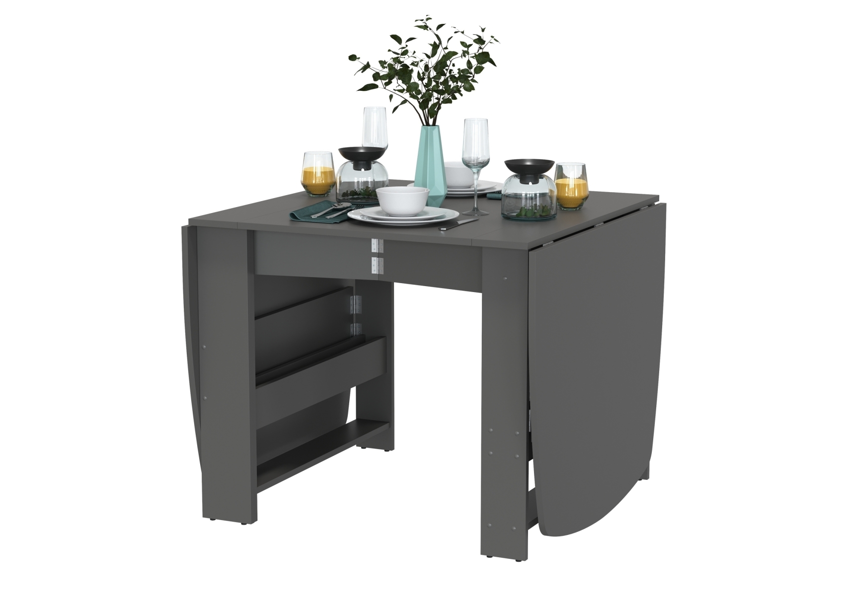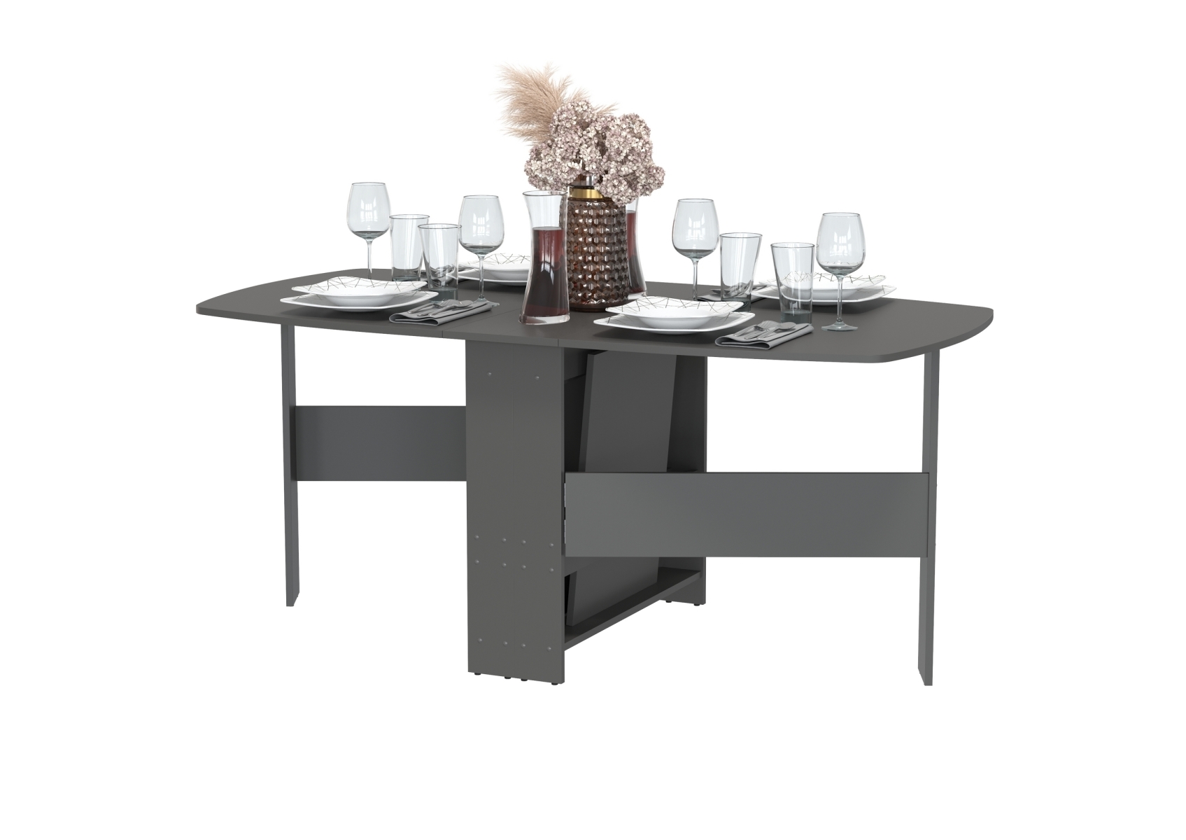 Стол-книжка 1-66граф, цвет графит, ШхГхВ 30х88х74 см. сложенный, разложенный три размера: 90/169/228х88х74 см.