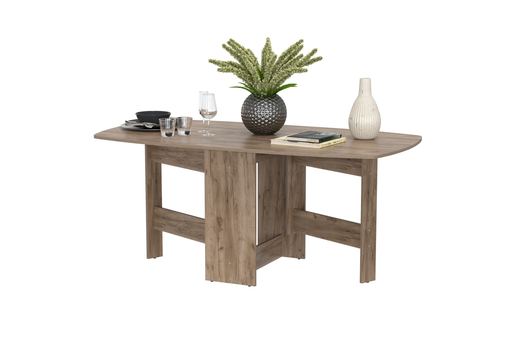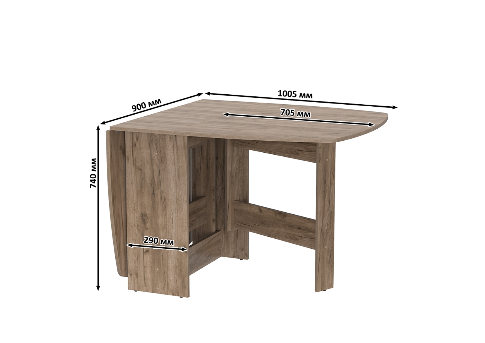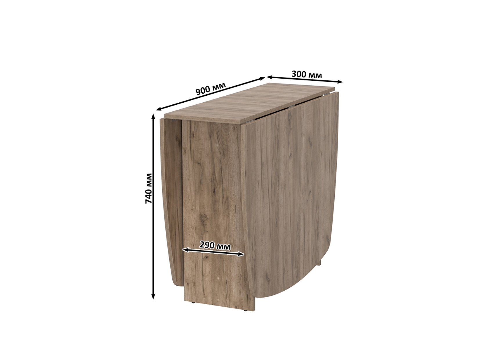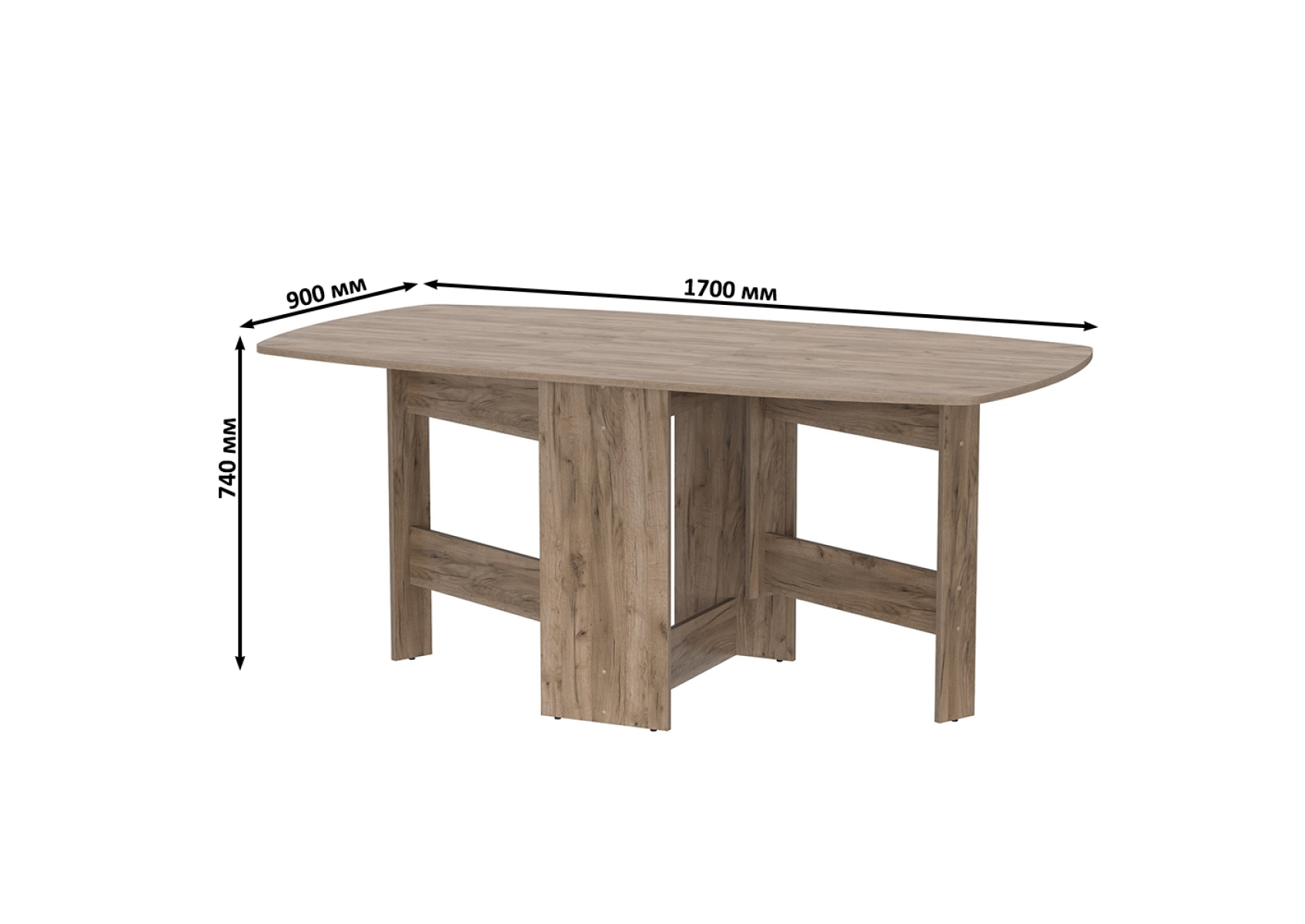 Стол-книжка раскладной 1-65. Цвет - дуб крафт табачный. Габариты (ШхГхВ) 3 размера - 170х90х74 см, 100,5х90х74 см, 30х90х74 см. Стол раскладывается - достаточно вместительный стол для большой кампании. В сложенном виде стол занимает совсем мало места, что позволяет экономить пространство в условиях малогабаритных квартир. Вы можете поставить его «под стеночку и не заметить» или использовать как подставку под цветы и телевизор.