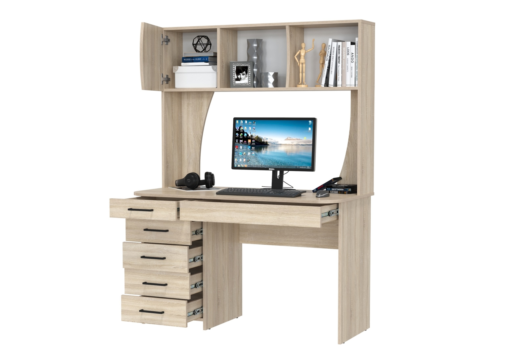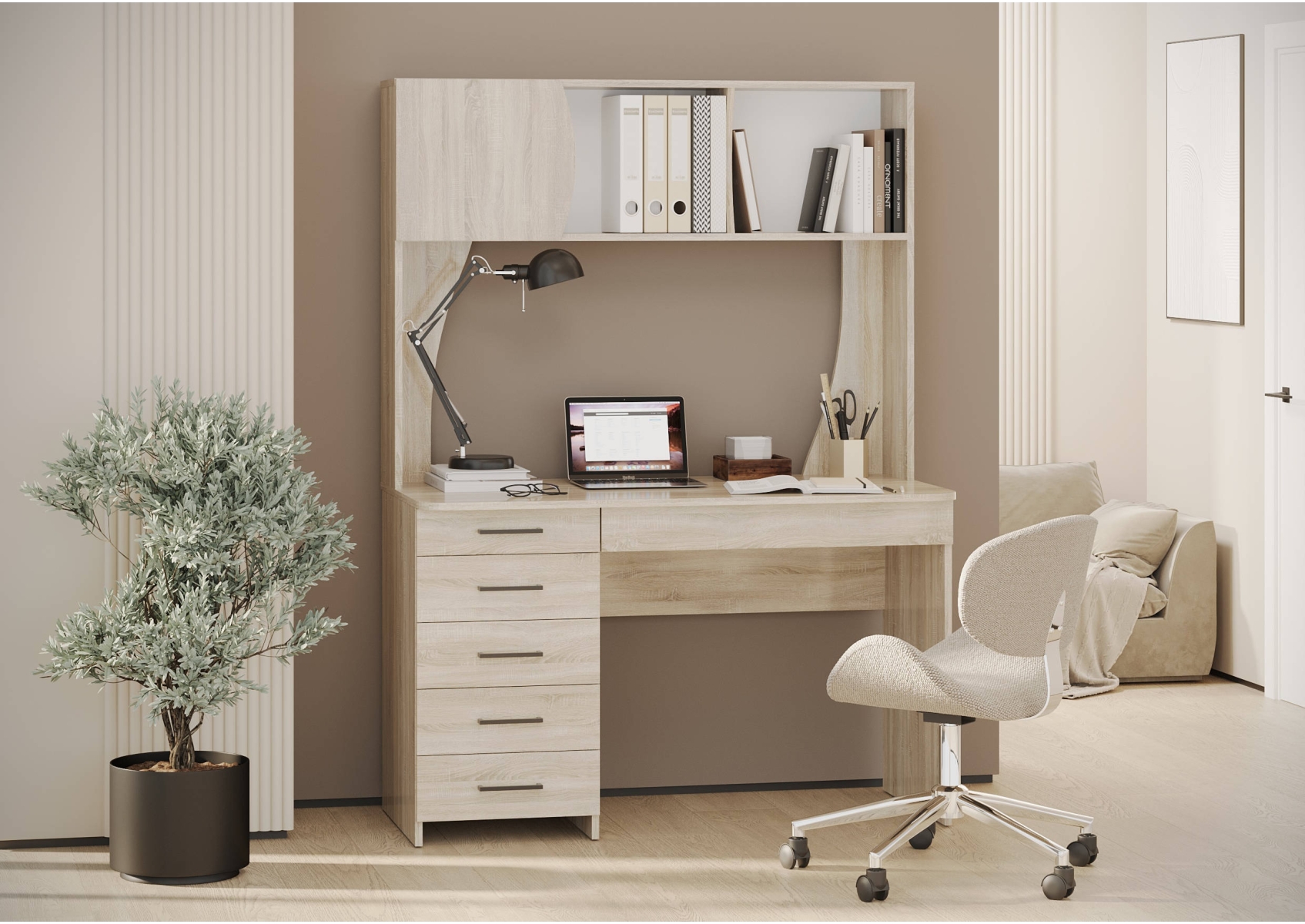 Стол рабочий Сигма. Цвет - дуб сонома. Размер (ШхГхВ) 121х61х166 см. Стол обладает большой столешницей, вместительной надстройкой и тумбой с выдвижными ящиками. Классический, практичный и функциональный, стол станет удобным рабочим местом для взрослых и детей.