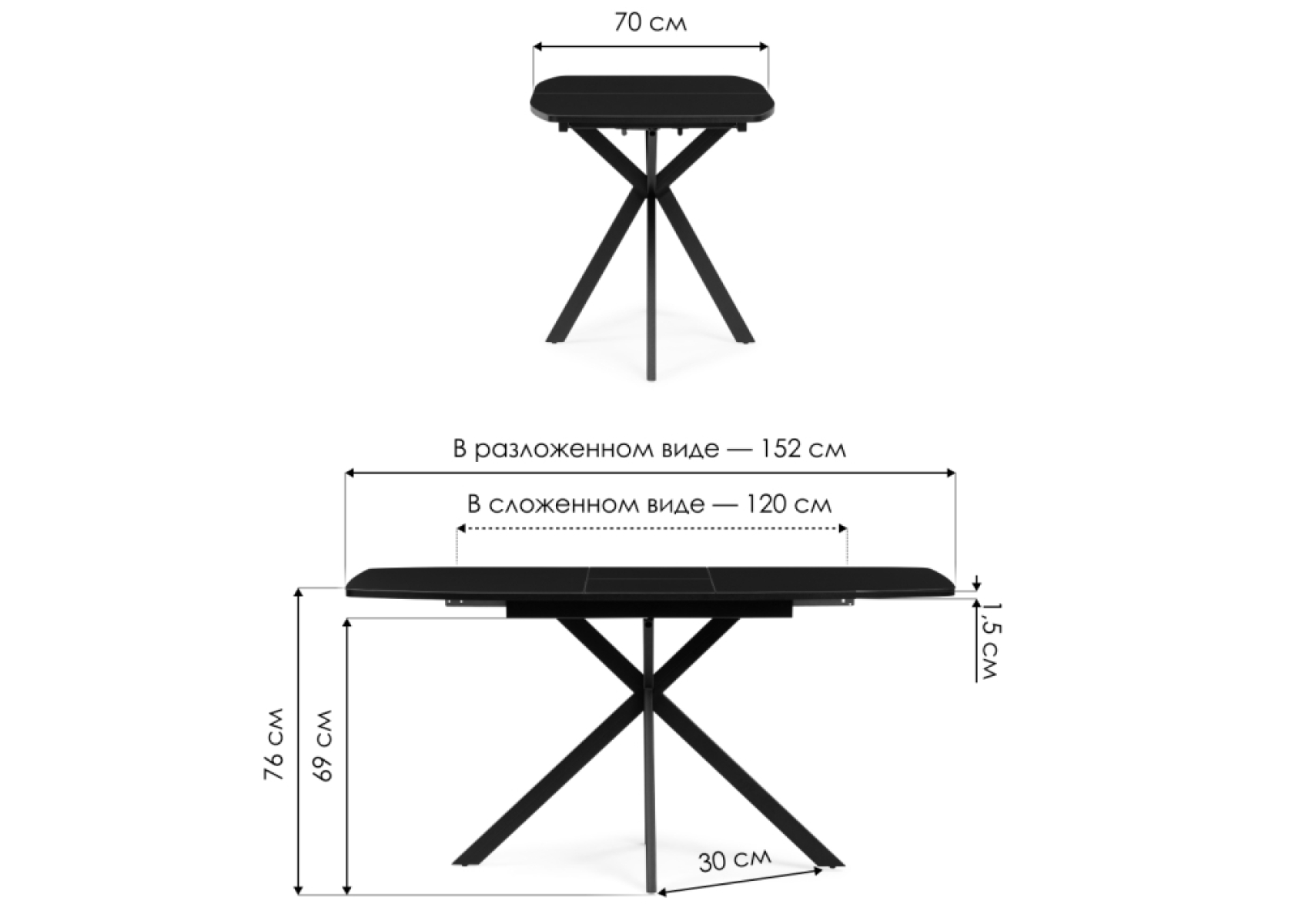 Деревянный стол Тамаса 120(150)х70х76 дуб галифакс табак / черный