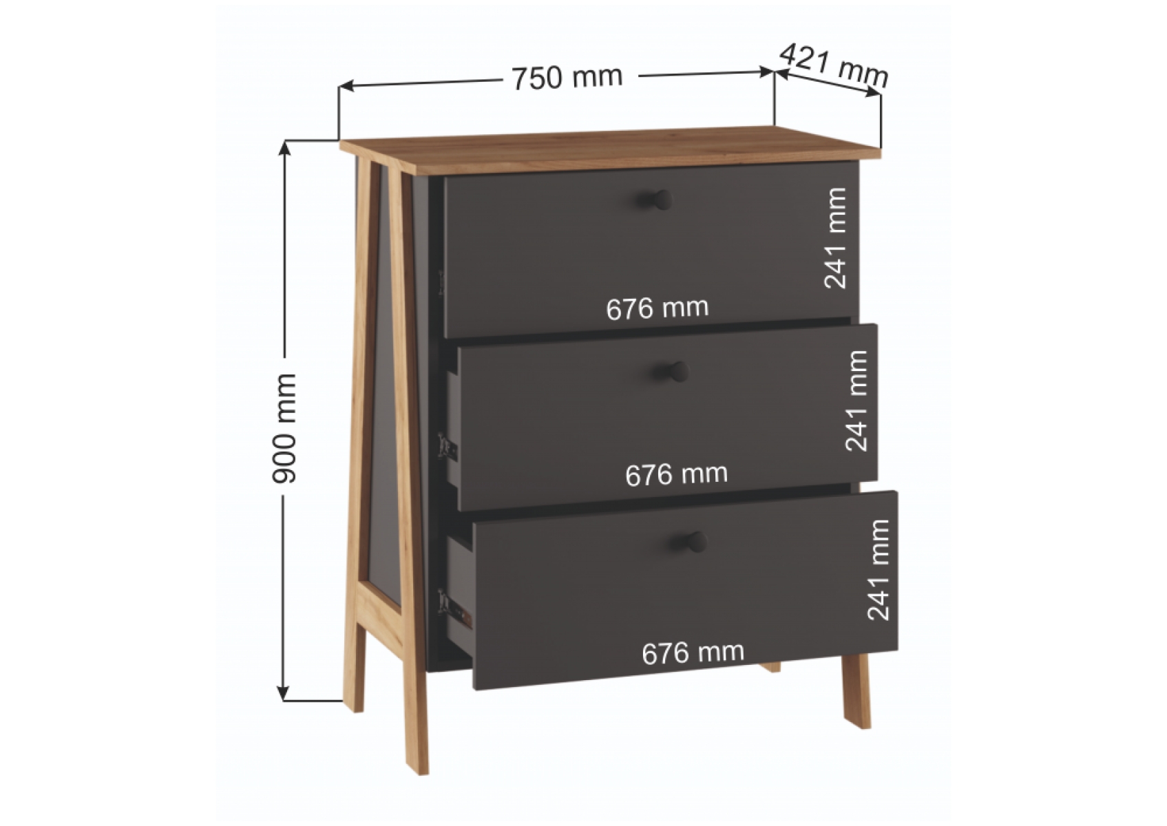 Комод Теодора графит / крафт золотой