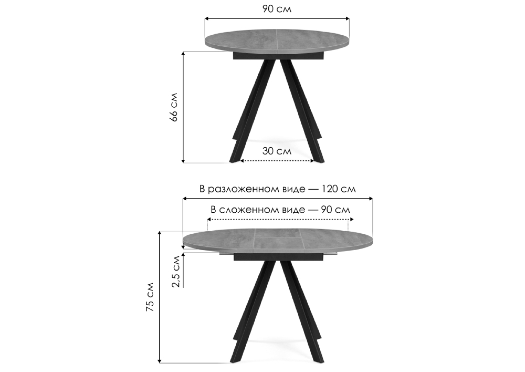 Деревянный стол Трейси 90(120)х90х75 бетон / черный