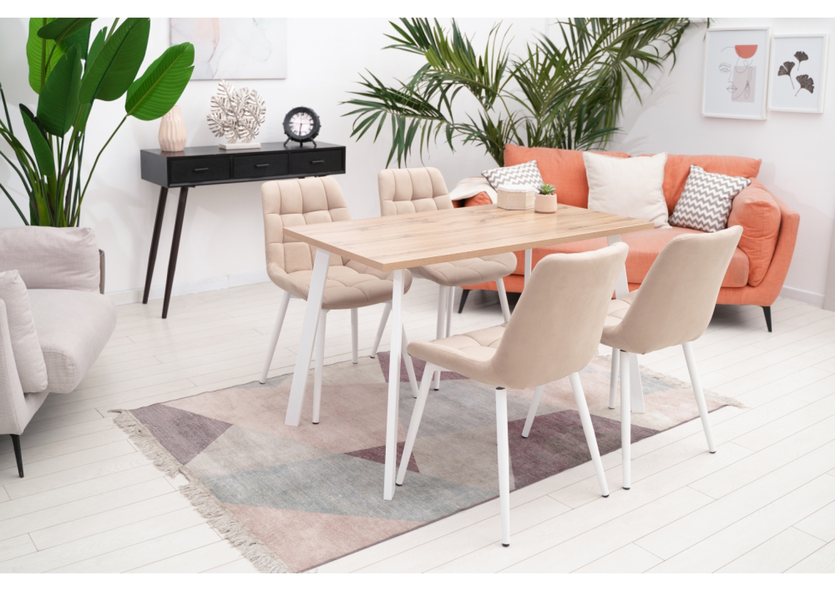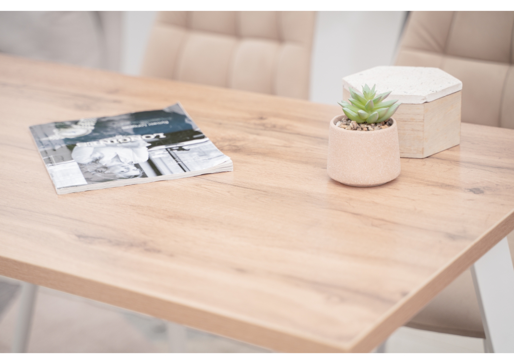 Стол Тринити Лофт 140х80х75 25 мм дуб делано светлый / белый матовый