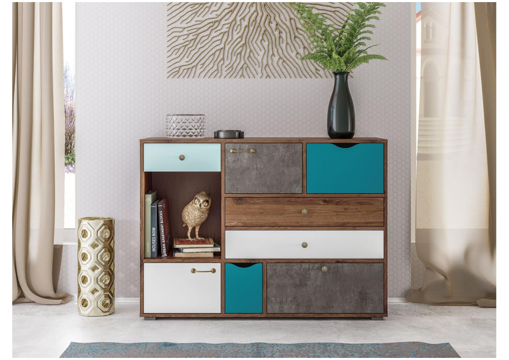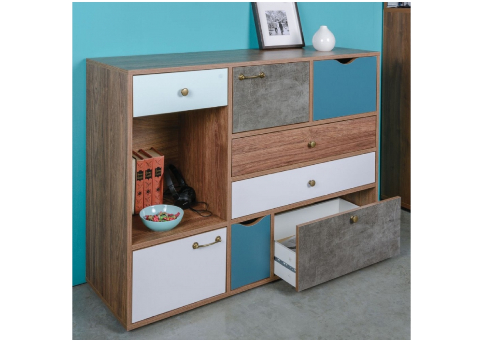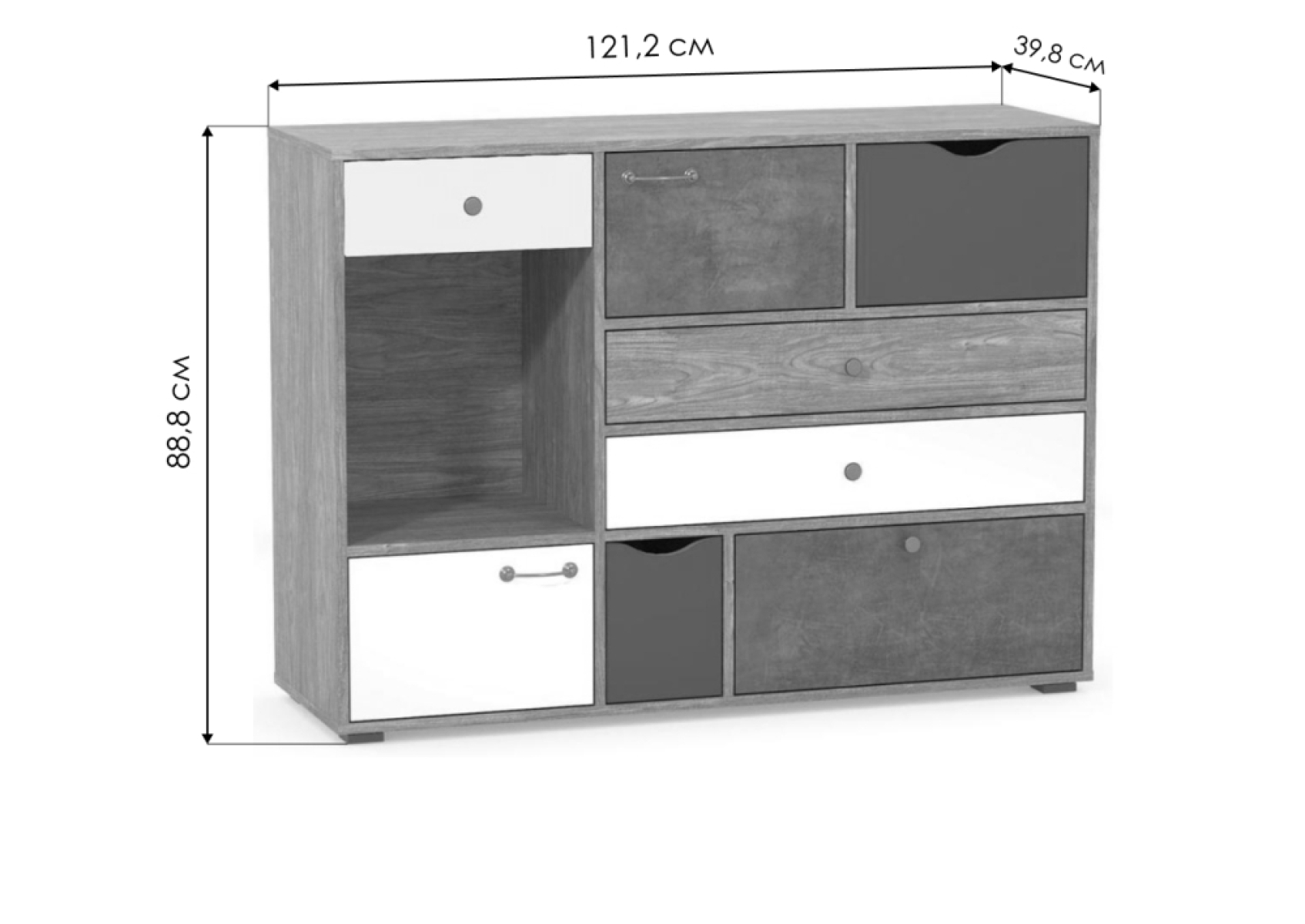 Комод Вайс 10.104 морское дерево винтаж К 015PW / камень темный / бензин 0244 SU / белый премиум