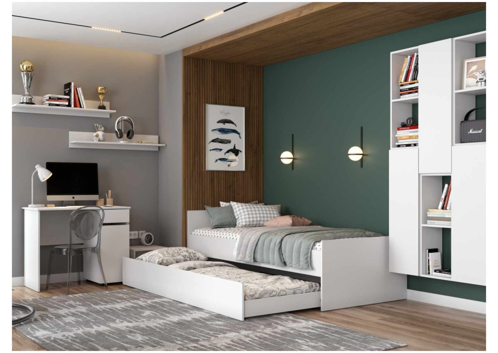 Выкатная кровать Валенсия 80х190 белый текстурный