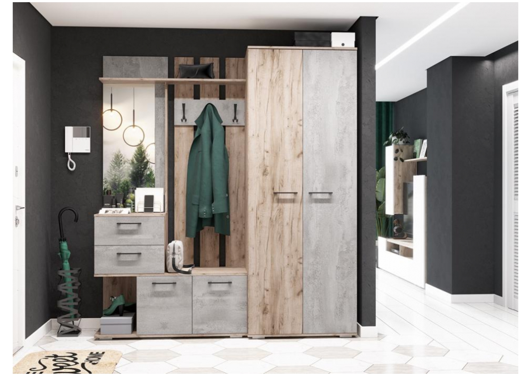 Модульная прихожая Вальс дуб крафт серый / бетонный камень комплектация 1