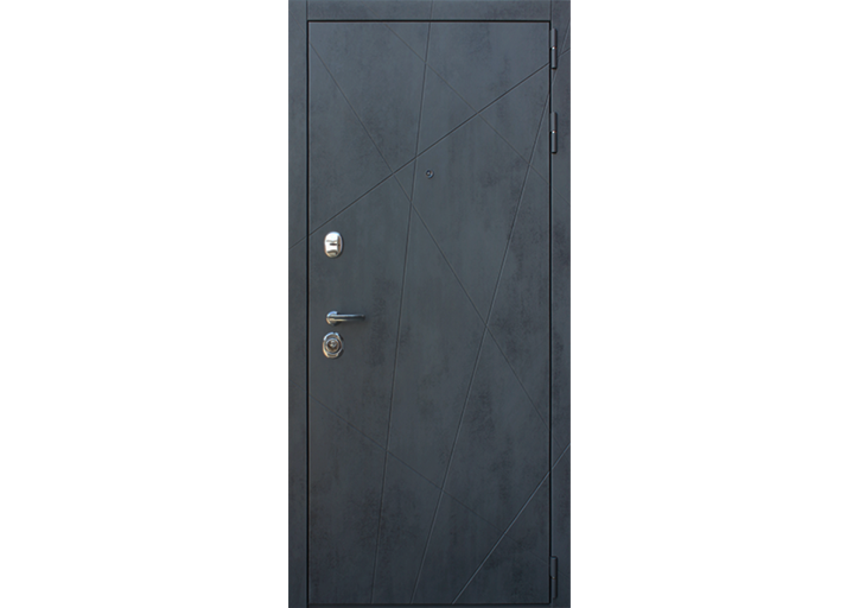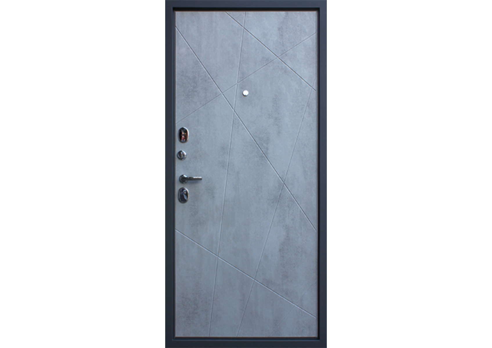 Экошпон.Наружный лист металла 1,5 мм. Объемная фрезеровка МДФ 10 мм, цвет «Бетон темный»; Наличник МДФ 80 мм, с фрезеровкой