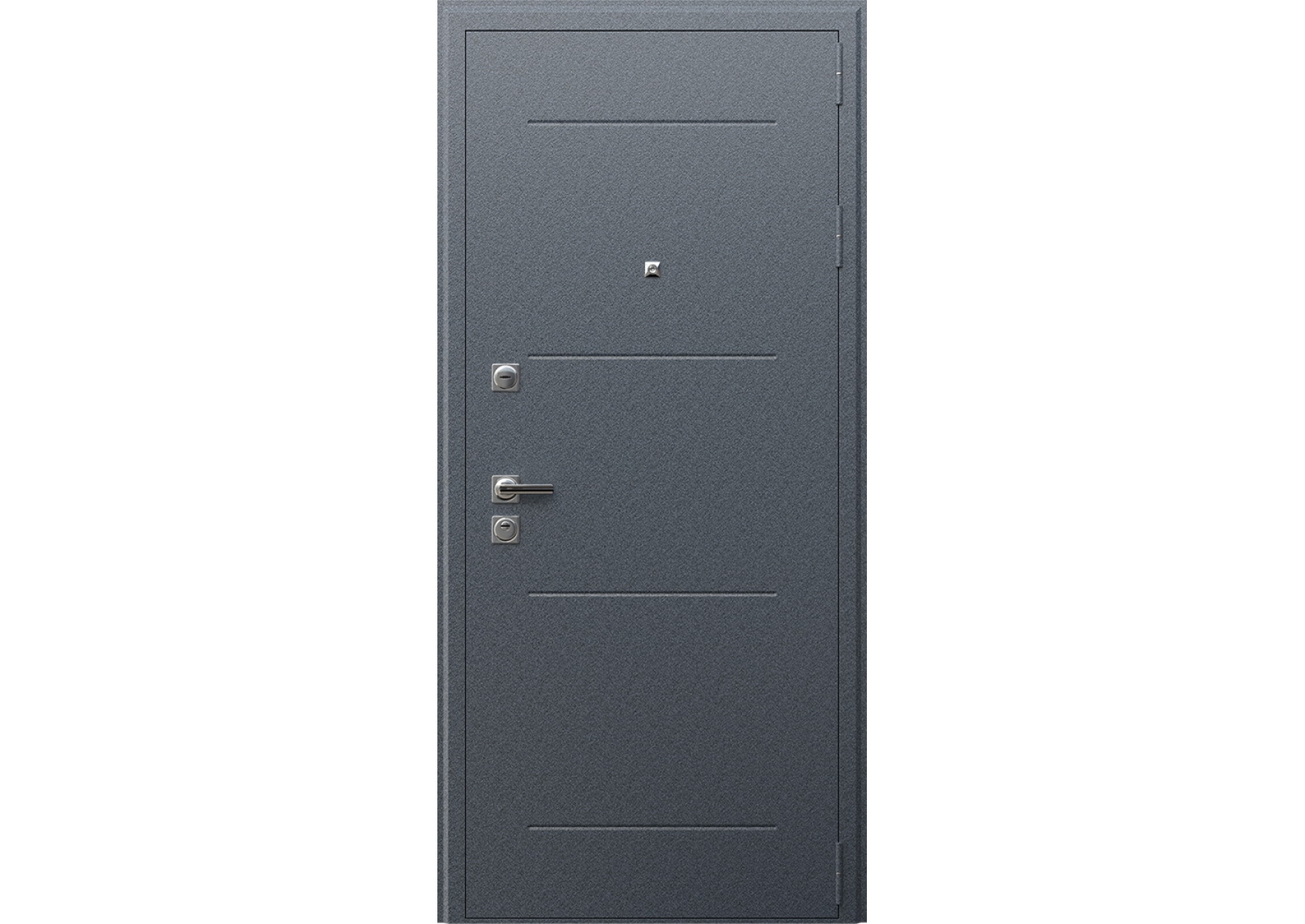 Букле Графит. Лист металла 1,5 мм; наличник фигурный. Давка на металле в виде горизонтальных полос.