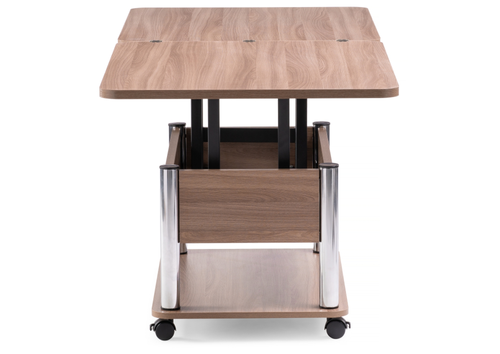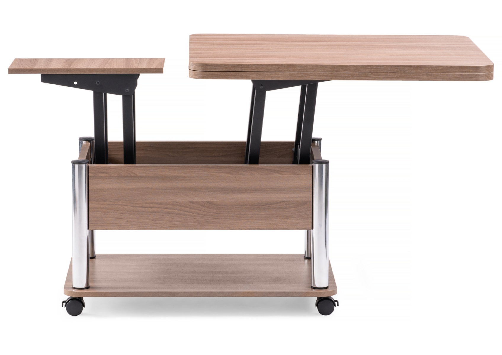 Стол-трансформер Виват звучит очень удобно и функционально. Его металлический каркас и ЛДСП материал делают его прочным и надежным в использовании. Кроме того, стол-трансформер Виват имеет колеса, что делает его мобильным и легко перемещаемым. В сложенном виде, он может использоваться как небольшой журнальный столик, а при необходимости легко превращается в большой стол, что делает его удобным для использования в различных ситуациях. Материал столешницы также ЛДСП, что делает его легким в уходе и прочным в использовании. В целом, стол-трансформер Виват является удобным и функциональным предметом мебели, который подойдет для использования в различных помещениях.
