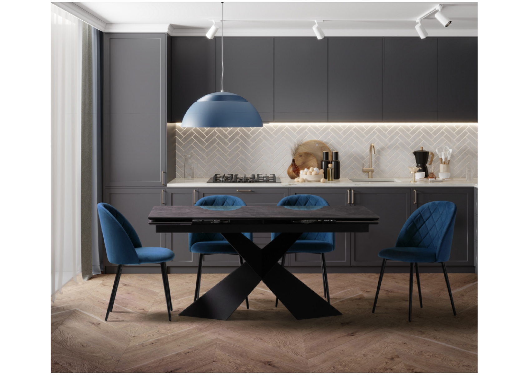 Стул на металлокаркасе Зест микровелюр темно-синий / черный глянец