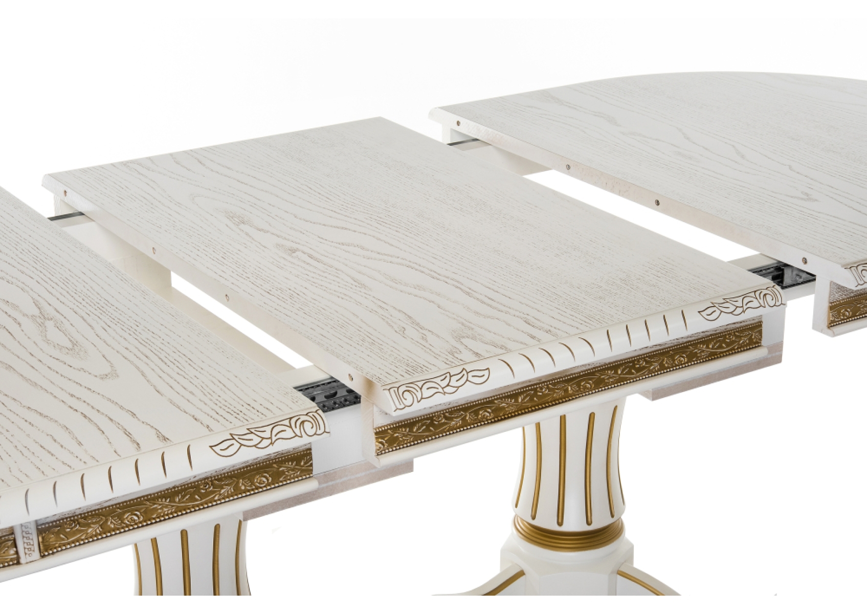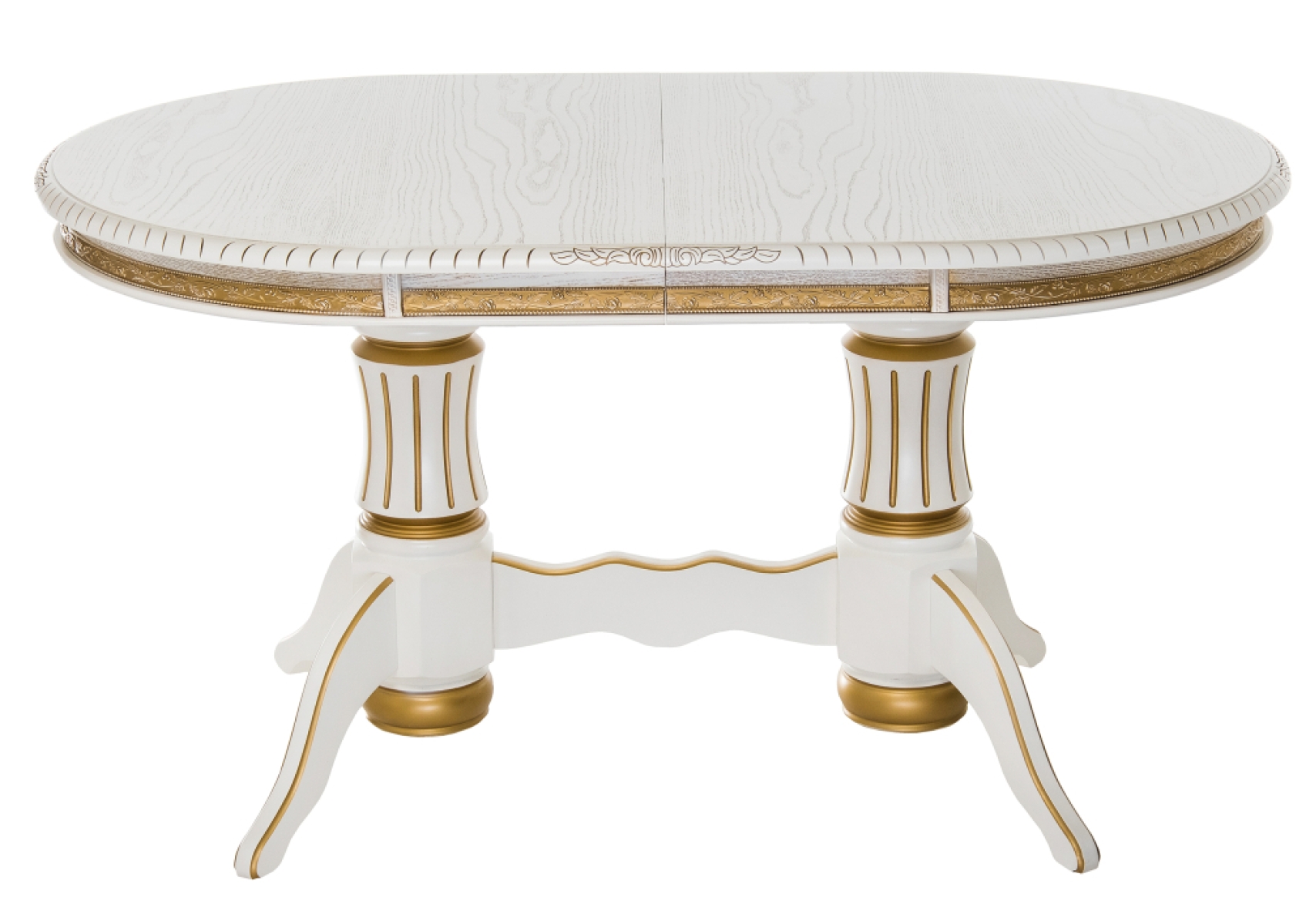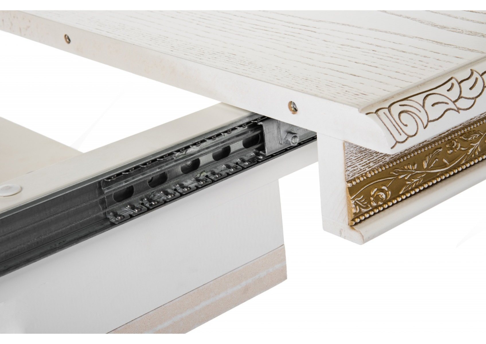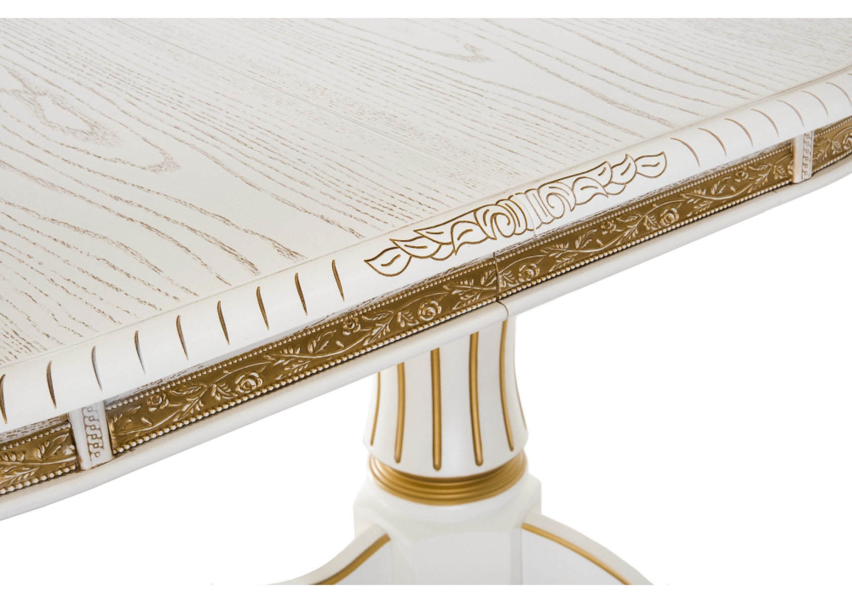 Деревянный стол Женева 140(190)х86х80 молочный с золотой патиной