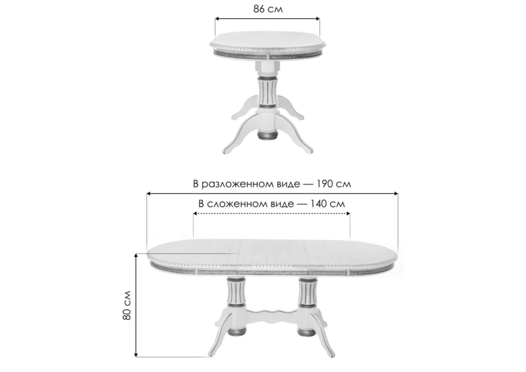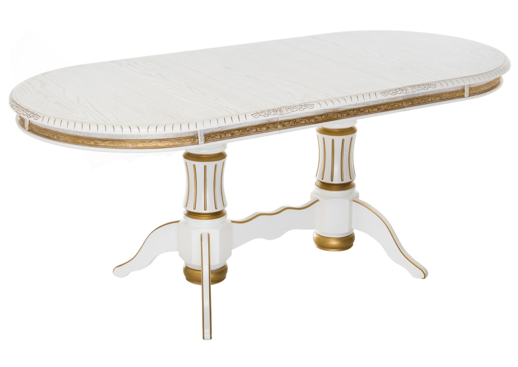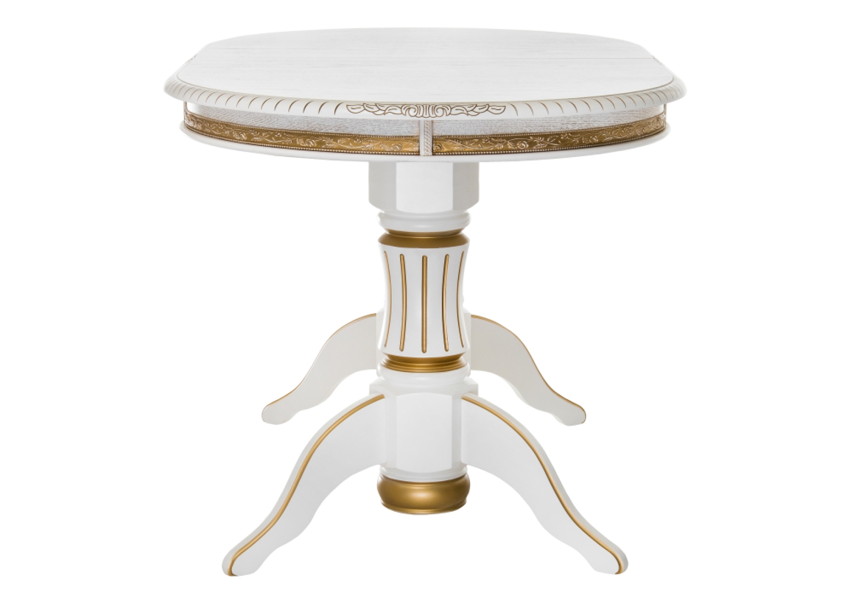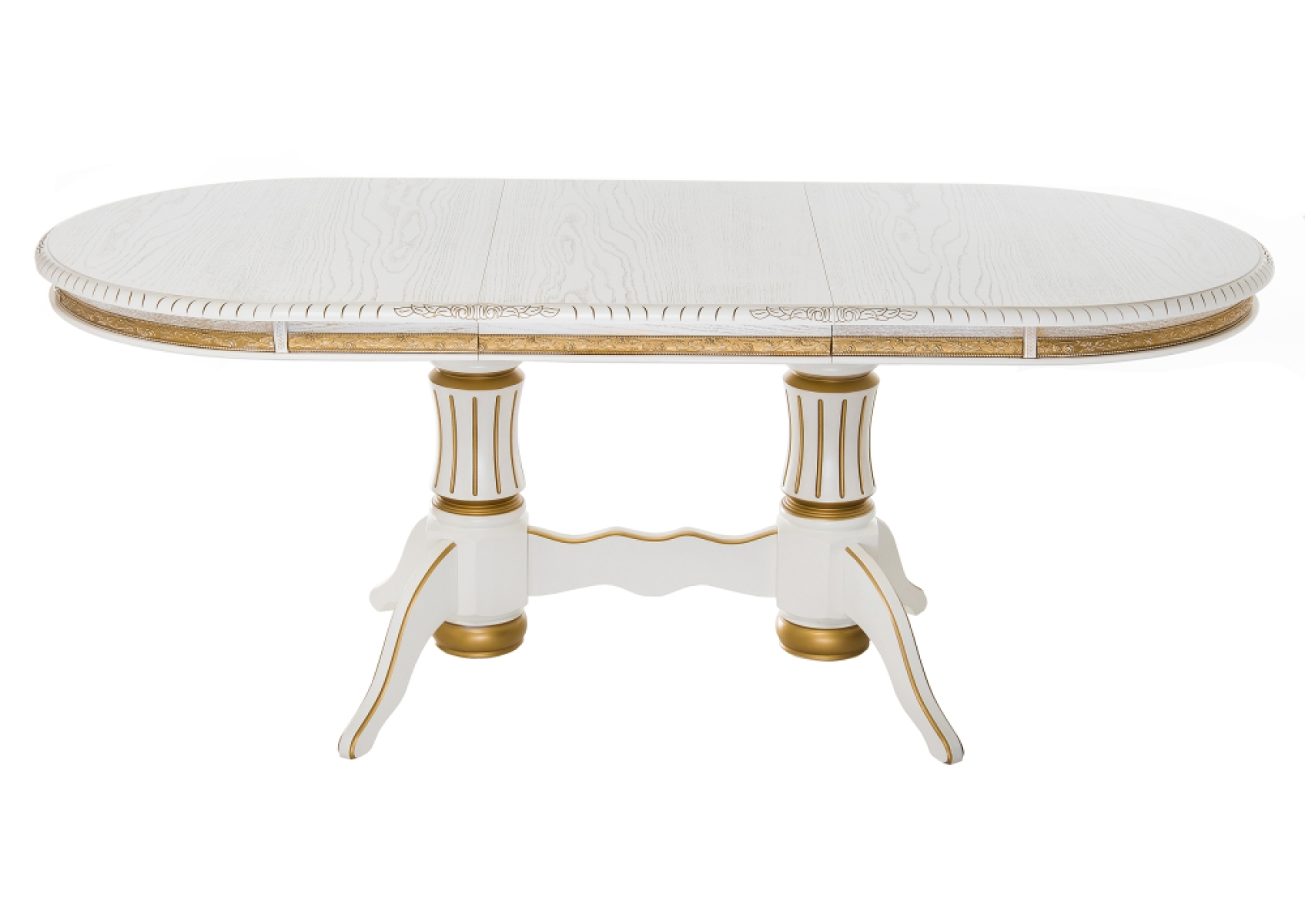Деревянный стол Женева 140(190)х86х80 молочный с золотой патиной